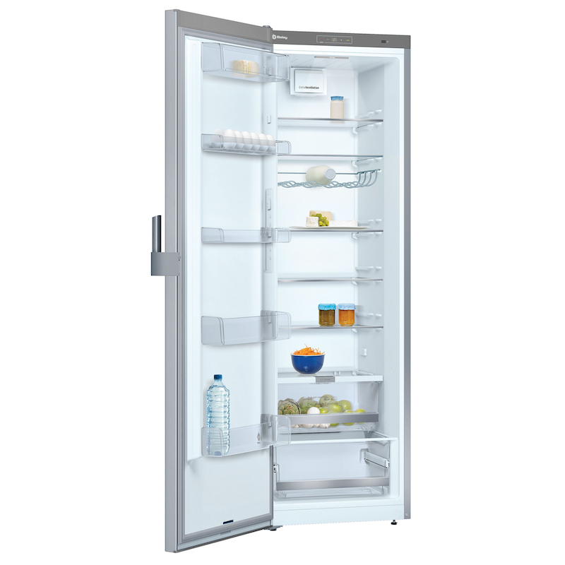 Clase de eficiencia energética A++ Dimensiones del aparato (alto x ancho x fondo sin tirador): 186 x 60 x 65 cm Sistema eficiente de iluminación mediante LED Tirador ergonómico de fácil apertura Cajón ExtraFresh Comfort para frutas y verduras con control de humedad Cajón de gran capacidad con guías telescópicas. Botellero cromado de gran capacidad Balcón ajustable en altura Electrónica táctil digital interior Filtro AirFresh, evita los malos olores Bandejas de cristal de seguridad extensibles Easy Access Refrigeración "Súper" con autodesconexión Control electrónico de la temperatura Descongelación y evaporación automática en refrigerador Sistema ExtraVentilation Apertura de puerta a la izquierda, puertas reversibles Juntas de puerta desmontables e intercambiables Combinación en pareja con frigorífico 3FCE568XE y congelador 3GFF568XE (accesorio de unión 3AF1860X)