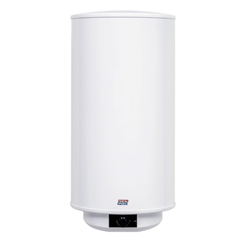 Termo de 100 litros de capacidad con control mecánico. La resistencia es de acero inoxidable de 316l. Realizado de acero y con un esmalte azul zafiro.