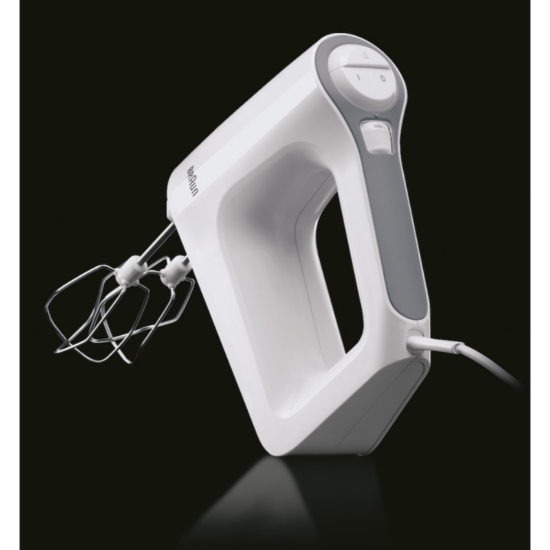 Alterna entre los accesorios para batir y los instrumentos de mezclar de forma rápida y segura tan sólo pulsando el botón grande de arriba.