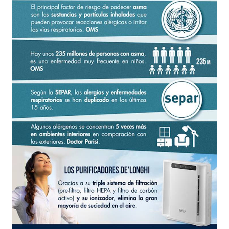 El purificador de aire Delongui AC 75 con sistema de filtrado multifuncional, garantiza una purificación ideal y el mejor confort para cada