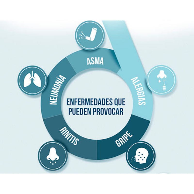 IONIZADOR: neutraliza las partículas de polvo, polen, humos de coche y humos de diversos tipos cuyas partículas se quedan en el aire.