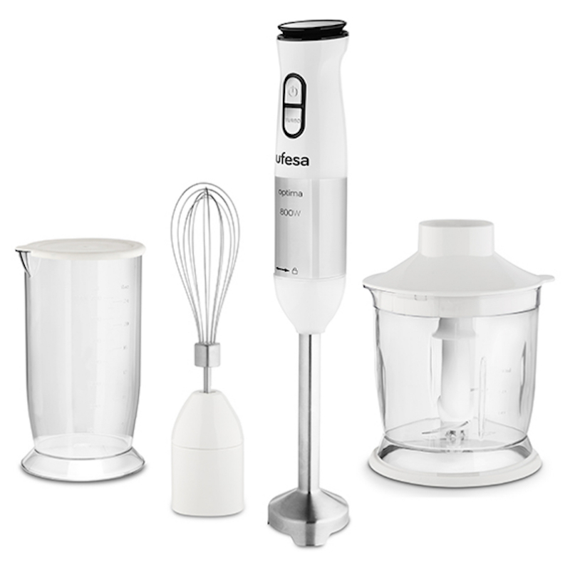 BP4562 optima Batidora de varilla Potencia 800W 20 velocidades Función Turbo 4 cuchillas de alta eficiencia Ergonómica Diseño antisalpicaduras Vaso medidor Accesorio picador Batidor emulsionador