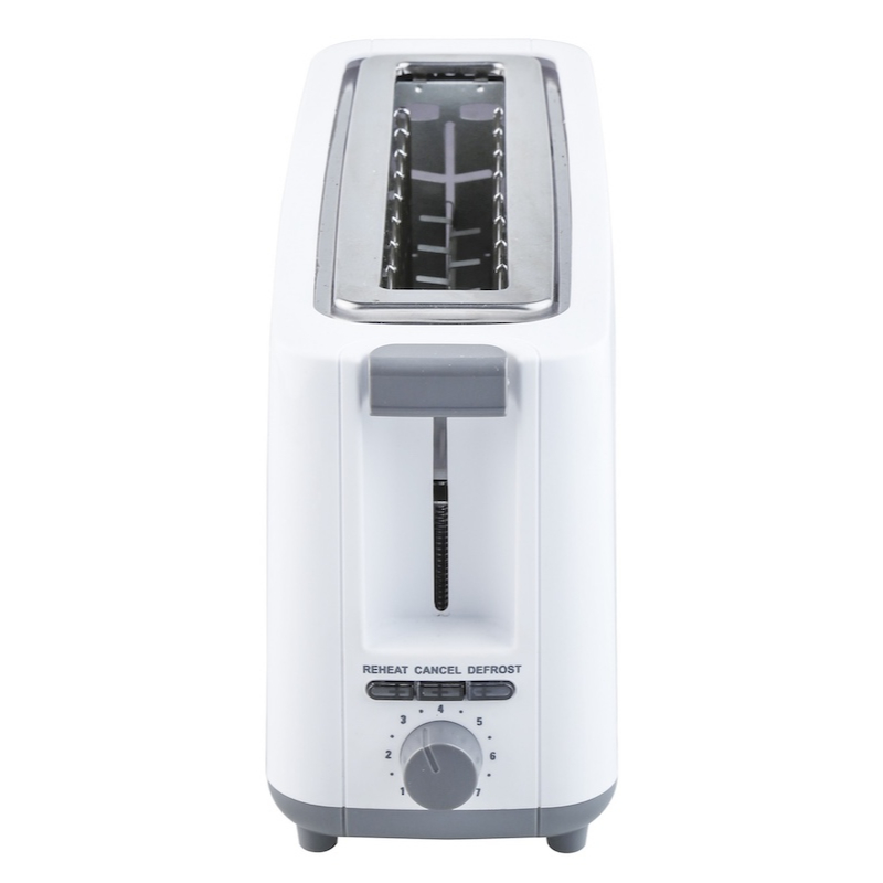 TOSTADORA PLASTICO 2PC.GRANDE 900 Ranura extragrande. Laterales de tacto frío. Siete niveles de tostado. Descongelar y recalentar. Bandeja recogemigas.