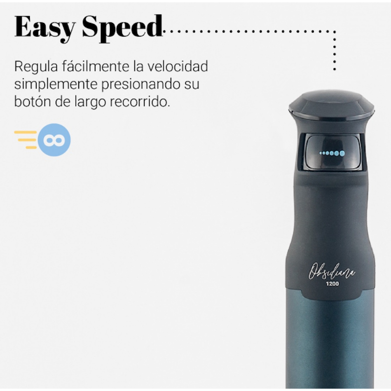 Easy Control: Controla la velocidad e intensidad según la presión que ejerzas con tu dedo sobre el cuerpo de la batidora.