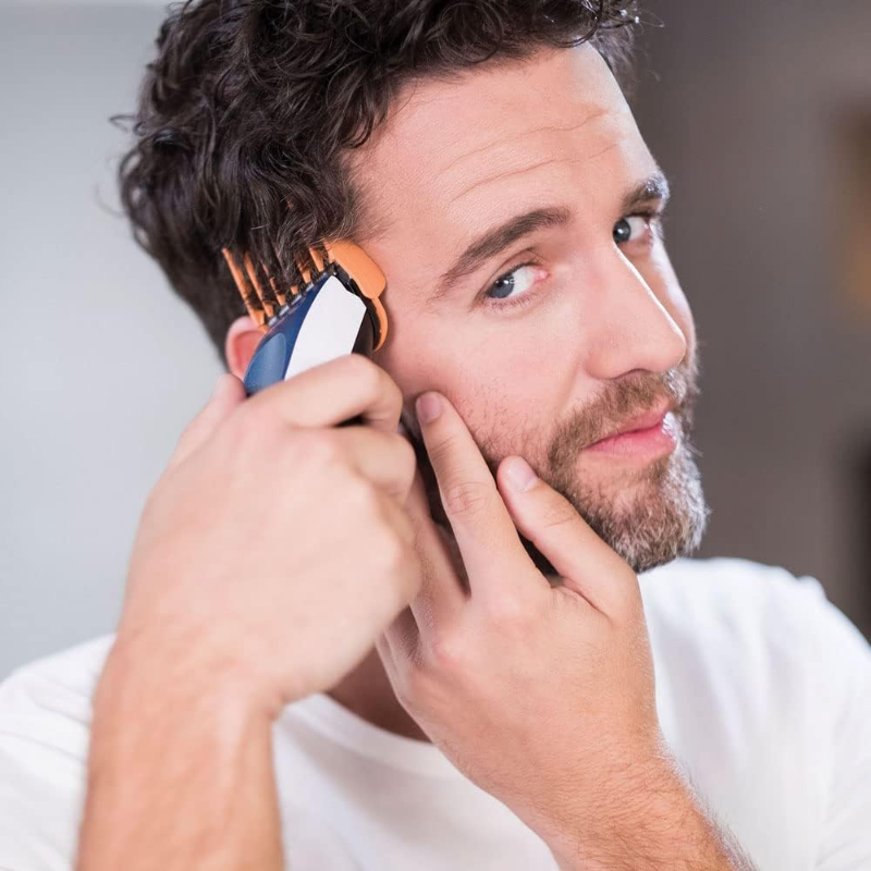 Este cortapelos con y sin cable está dotado de un potente corte gracias a las cuchillas de precisión autoafilables y lavables. Ofrece una precisión de 1,5 – 25 mm, retira el peine-guía para un corte apurado de 1mm. Cuenta con una batería muy potente para 60 minutos de funcionamiento inalámbrico, tiempo suficiente para repasar toda la cabeza a cualquier nivel de precisión. Si te quedas sin batería no pasa nada, lo conectas a la corriente y sigues cortando. Además, está dotado de un diseño ergonómico con tacto suave para mayor comodidad. Los peines de color con código de color te ayudarán a identificar el peine que utilizas habitualmente. Es perfecto para aquellas personas que optan por la practicidad sin renunciar a la modernidad.