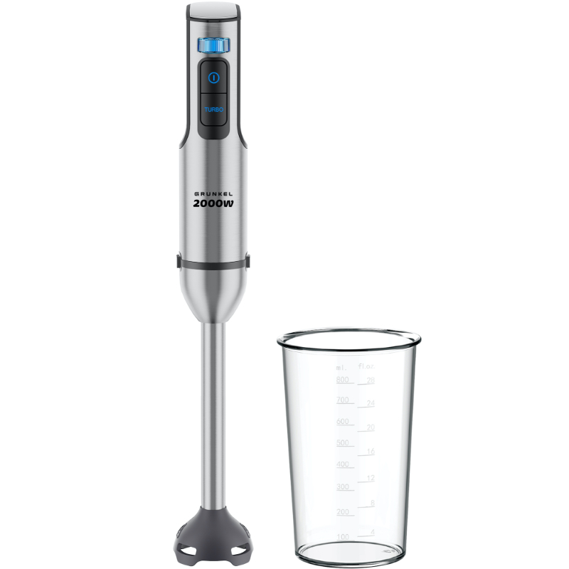 La Batidora de mano Grunkel BM-2000EXTREME es la opción definitiva para quienes buscan máxima potencia y rendimiento en la cocina. Con un impresionante motor de 2000W, esta batidora permite triturar, mezclar y batir con una rapidez inigualable. Su regulador de velocidad permite ajustar la intensidad según la preparación, y su función TURBO añade un extra de potencia para los ingredientes más resistentes. Diseñada para ofrecer comodidad y durabilidad, cuenta con un brazo XL de 22,5 cm, ideal para recipientes profundos. Sus cuchillas de acero inoxidable x4 (SUS 304) garantizan cortes precisos y una mezcla homogénea en cada uso. Además, su conector metálico proporciona mayor estabilidad y resistencia. La inclusión de un indicador LED le da un toque moderno y facilita su uso. Con su diseño ergonómico y materiales de alta calidad, la BM-2000EXTREME es la herramienta perfecta para cualquier tipo de receta.