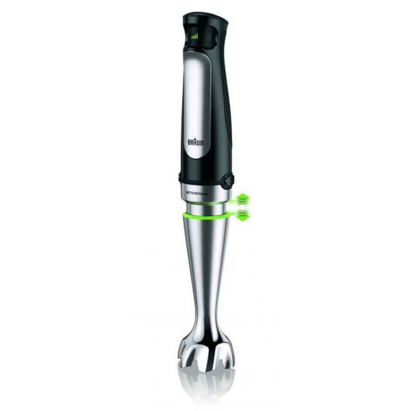 La nueva batidora de mano Minipimer 7 de Braun está diseñada para ayudarte a preparar comidas saludables para tu familia y amigos, de forma rápida y sencilla. Ahora cuenta con la primera tecnología ACTIVEBlade del mundo. Este innovador sistema de cuchillas flexibles proporciona un 250% más de superficie activa de corte activa* - un ingenioso ayudante de cocina para que puedas batir con mayor facilidad. También incluye la nueva tecnología Easy SmartSpeed de Braun, que permite tener el control con un solo toque. Simplemente presiona el botón para ajustar la potencia de forma intuitiva y sin interrupciones. *En comparación con las batidoras de mano Braun sin ACTIVEBlade.