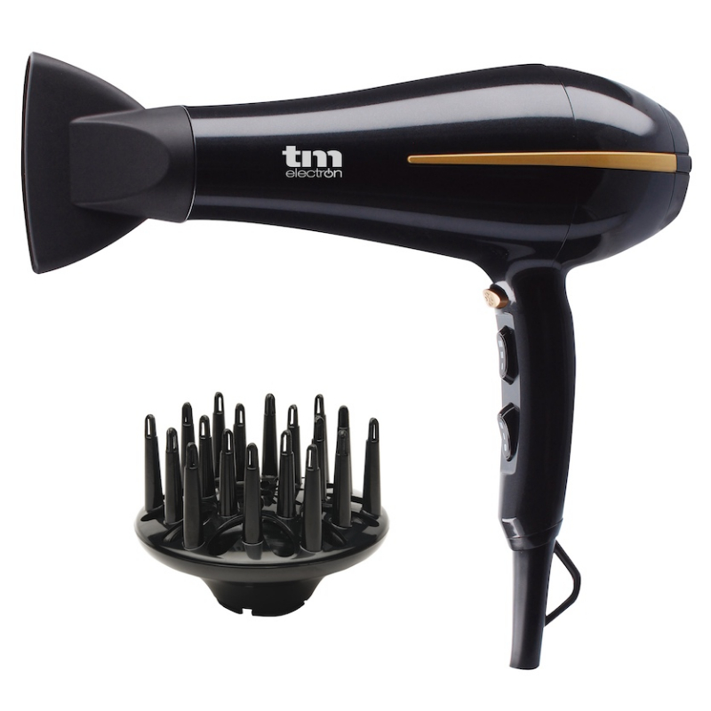 Secador de pelo profesional motor AC TM Electron TMHD126 con 2.400W de potencia, función iónica, 3 posiciones de calor y 2 velocidades. El secador de pelo más potente de nuestra gama no te dejará indiferente: obtendrás resultados de peluquería en cuestión de minutos y en tu propia casa. Con sus 2 velocidades y 3 posiciones de calor para el flujo de aire siempre obtendrás la potencia y la temperatura que necesites para secar tu pelo de la forma más rápida y segura para tu cabello.