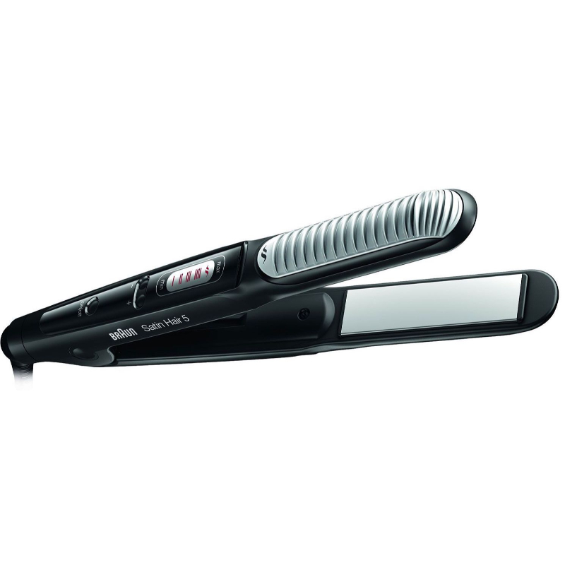 La plancha de pelo Braun Satin Hair 5 con unas placas cerámicas muy finas de 24mm y rizador nos ofrece una temperatura regulable entre 130 y 200°C en tan solo 40 minutos de calentamiento para tenerla lista para su uso en un momento. Dispone de zona de tacto frío, un cable de 2 metros y desconexión automática en 30 minutos.