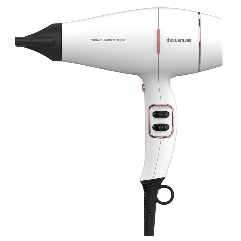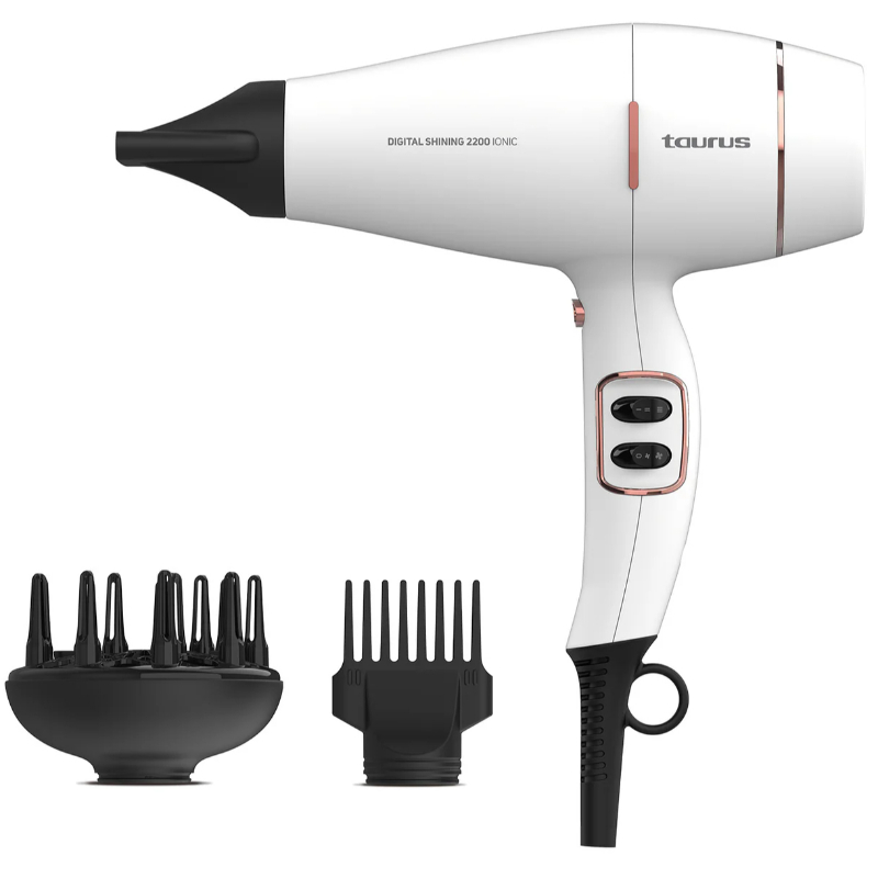 El secador de pelo Taurus Digital Shining 2200 Ionic combina todas las prestaciones de un modelo profesional con un diseño pensado para todo tipo de usuarios. Su potencia es de 2200 vatios, ideal para el ámbito doméstico. Mantiene un enérgico caudal de aire, de 160 km/h, sin importar la tipología del cabello.