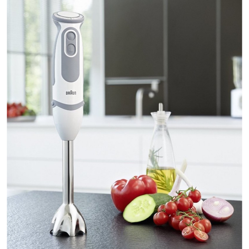 Además, esta batidora de mano de Braun es la más práctica por tener una campana antisalpicaduras patentada de acero inoxidable, un fácil desmontaje compatible con todos los accesorios easy click y un vaso medidor de 600ml calibrado en ml y oz para facilitar la preparación de todas tus sopas y cremas.