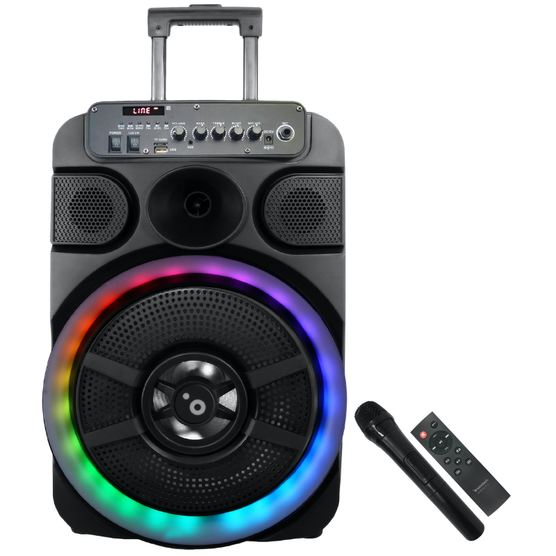 El altavoz MUSCLE S12 cuenta con Bluetooth V5.0 integrado y 40W de potencia con los que, junto a su función Karaoke y su micrófono inalámbrico, podrás ambientar cualquier evento o fiesta. Además, si sus 40W de potencia no te parecen suficientes, este altavoz te permite sincronizar dos MUSCLE S12 gracias a la tecnología TWS y así duplicar su potencia ofreciendo una experiencia de sonido 3D. Escoge entre múltiples opciones de reproducción y disfruta de tu música como quieras: mediante Bluetooth, puerto USB de reproducción, tarjetas de memoria o con una entrada de audio de 3.5 mm.