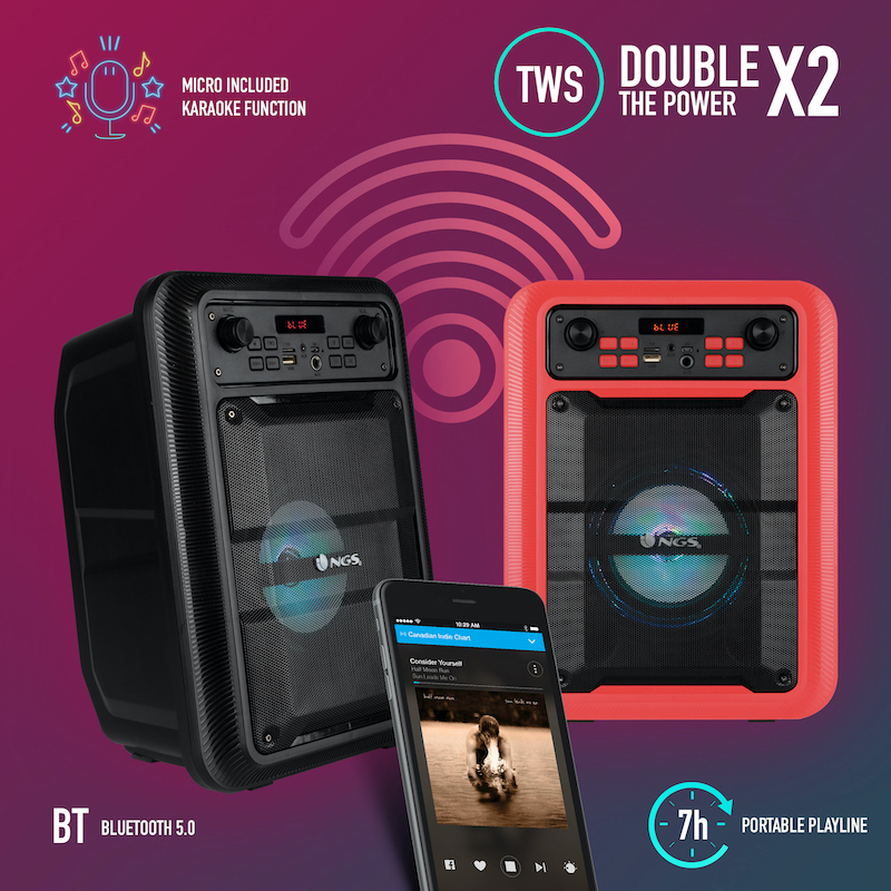 Equipado con una batería integrada de 1200 mAh (recargable vía Micro USB), proporcionando hasta 7 horas (50 % volumen y luces apagadas) de reproducción.