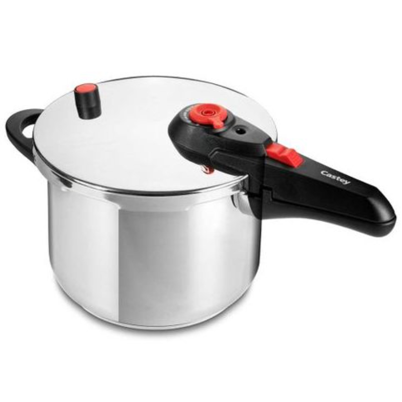 La Olla a presión Red destaca por sus características técnicas avanzadas que la convierten en una herramienta excepcional. Diseñada para proporcionar un método de cocción más saludable y mantener al máximo las vitaminas, esta olla cuenta con un regulador que permite ajustar los niveles de presión operativa en un rango de 60kPa a 110kPa, proporcionando flexibilidad en la preparación de diversos alimentos. Su mecanismo de cierre hermético y control de presión permite cocinar alimentos en un tiempo considerablemente menor, conservando al máximo sus nutrientes y potenciando los sabores. La olla a presión destaca por su capacidad para ablandar legumbres de manera rápida, facilitando la preparación de potajes saludables y reconfortantes. Con ella, podrás disfrutar de recetas clásicas como la fabada asturiana, el cocido madrileño, la exquisita receta de rabo de toro, así como guisos de garbanzos y de cordero. Ventajas de la olla a presión Red: Capacidad de 6 litros: Ideal para preparar porciones generosas de alimentos. Regulador con Niveles de Presión: Ofrece flexibilidad con niveles que van desde 60kPa hasta 110kPa para adaptarse a distintos tipos de alimentos. Válvula de Seguridad: Garantiza un funcionamiento seguro y eficiente, verificando automáticamente la presión interna. Fabricación en Acero Inoxidable 18/10: Tanto la tapa como el cuerpo son resistentes al desgaste, proporcionando durabilidad a largo plazo. Mango de Baquelita con Diseño de Tijera: Facilita la apertura y el cierre prácticos, previniendo quemaduras accidentales durante el manejo. Representación Visual del Nivel de Presión: Líneas blancas indican claramente presión baja o alta para un monitoreo intuitivo del proceso de cocción. Versatilidad en Cocinas: Compatible con todo tipo de cocinas, incluyendo las de inducción, gracias a su fondo que alcanza rápidamente la temperatura óptima.