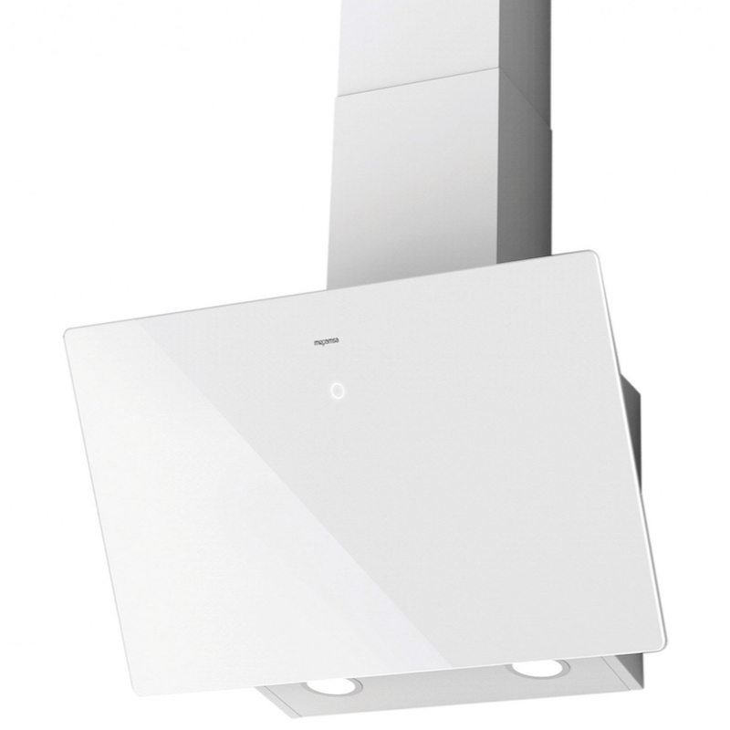 Campana extractora decorativa de pared de elegante diseño en cristal templado blanco.
