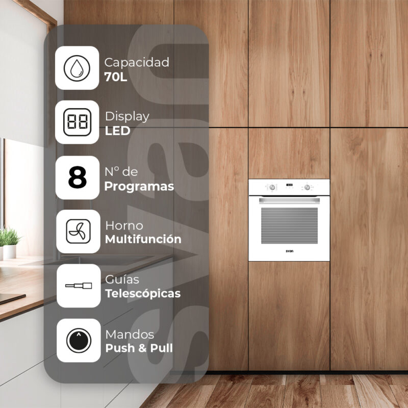 Horno Multifunción alto 60 cm de Svan modelo SHM8700DCB.