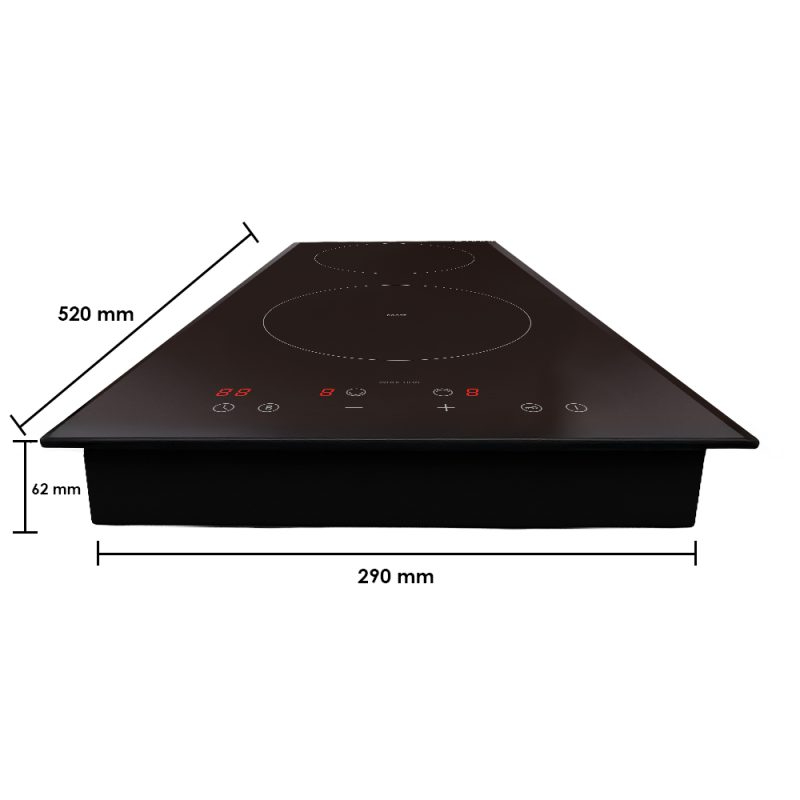Placa de 2 zonas independientes de cocción con potencia total de 2990 W.