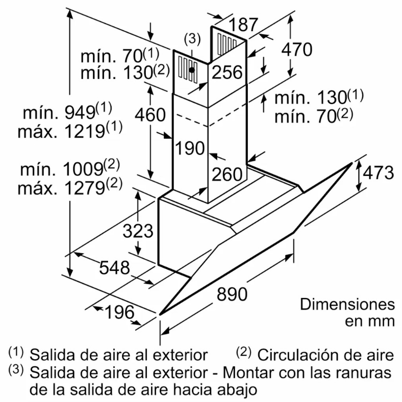 Potencia de extracción en nivel 3: 467 m³/h.