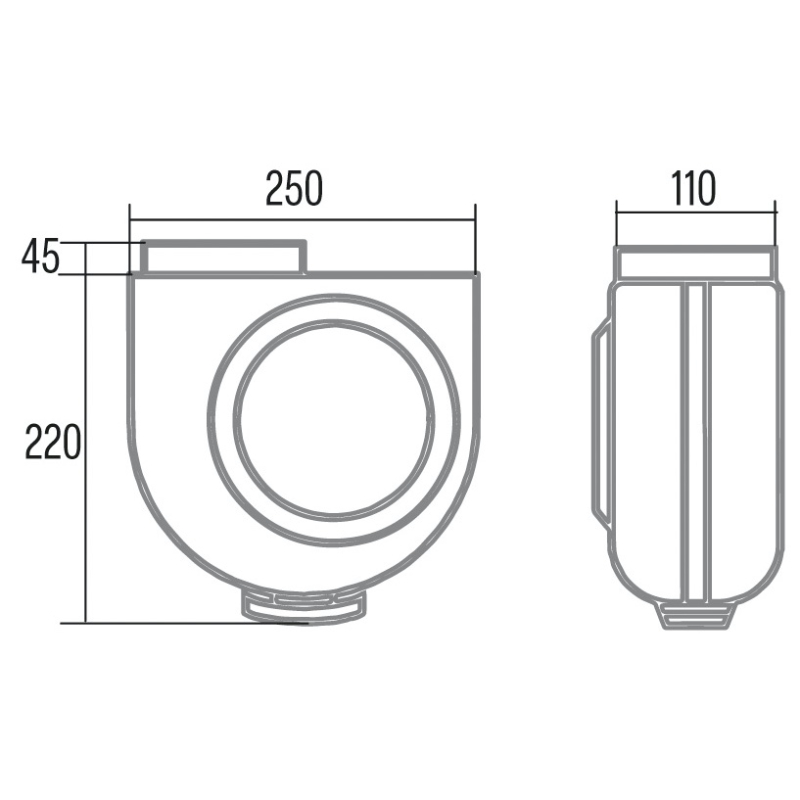 Extractor de cocina fabricado en metal. Tubo situado a la izquierda. Diámetro del tubo: 110 cm. Potencia absorción: 60 W. Caudal absorbido: 290 m3/h. Presión sonora: 52 dB. Medidas: 250x220x124 mm.