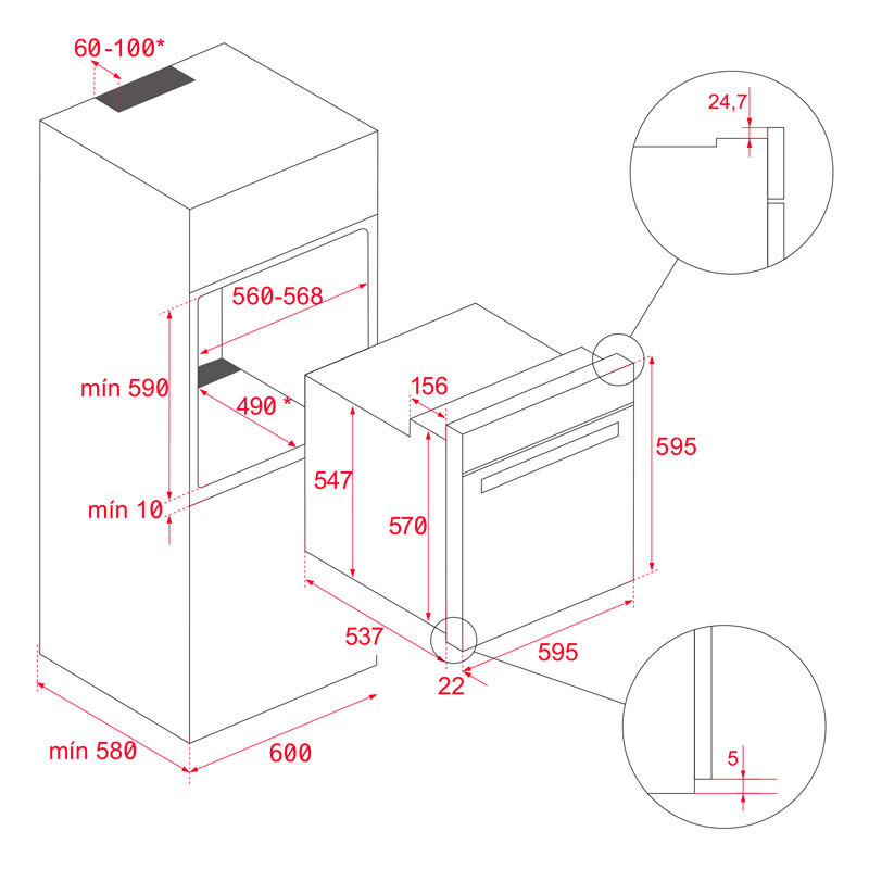 Dimensiones nicho de encastre: 590 (mínimo) x 560-568 (alto x ancho)