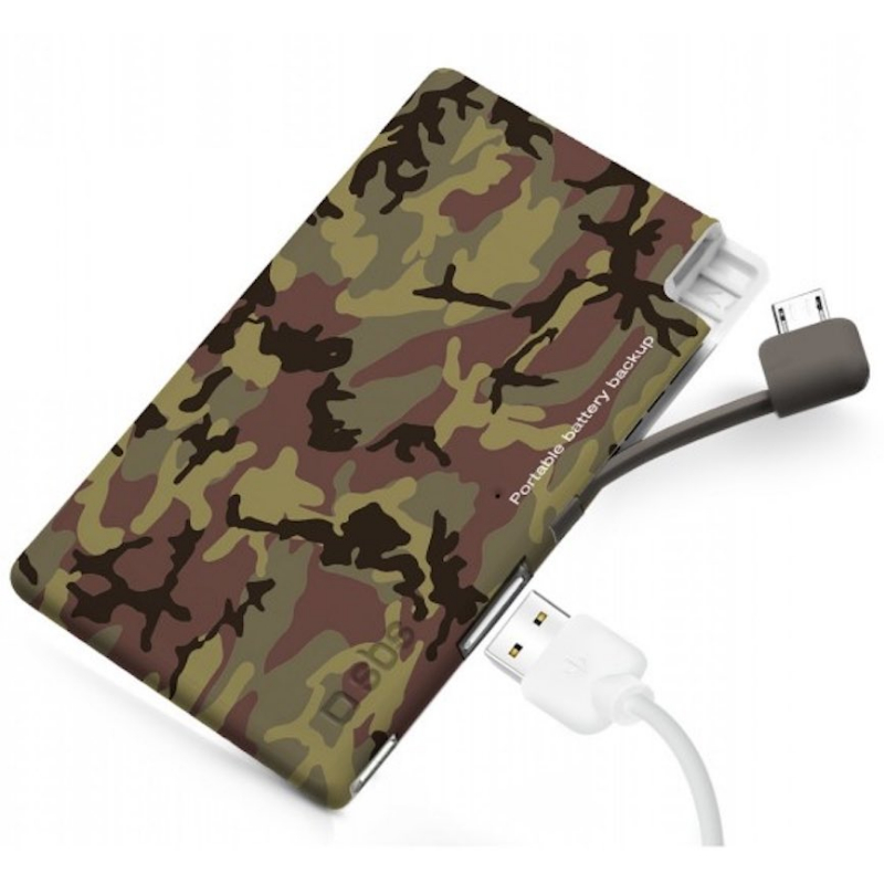 Acumulador de energía portátil 2.200 mAh Li-Ion polymer, 1 salida USB 1A con cable Micro USB built, color camouflage